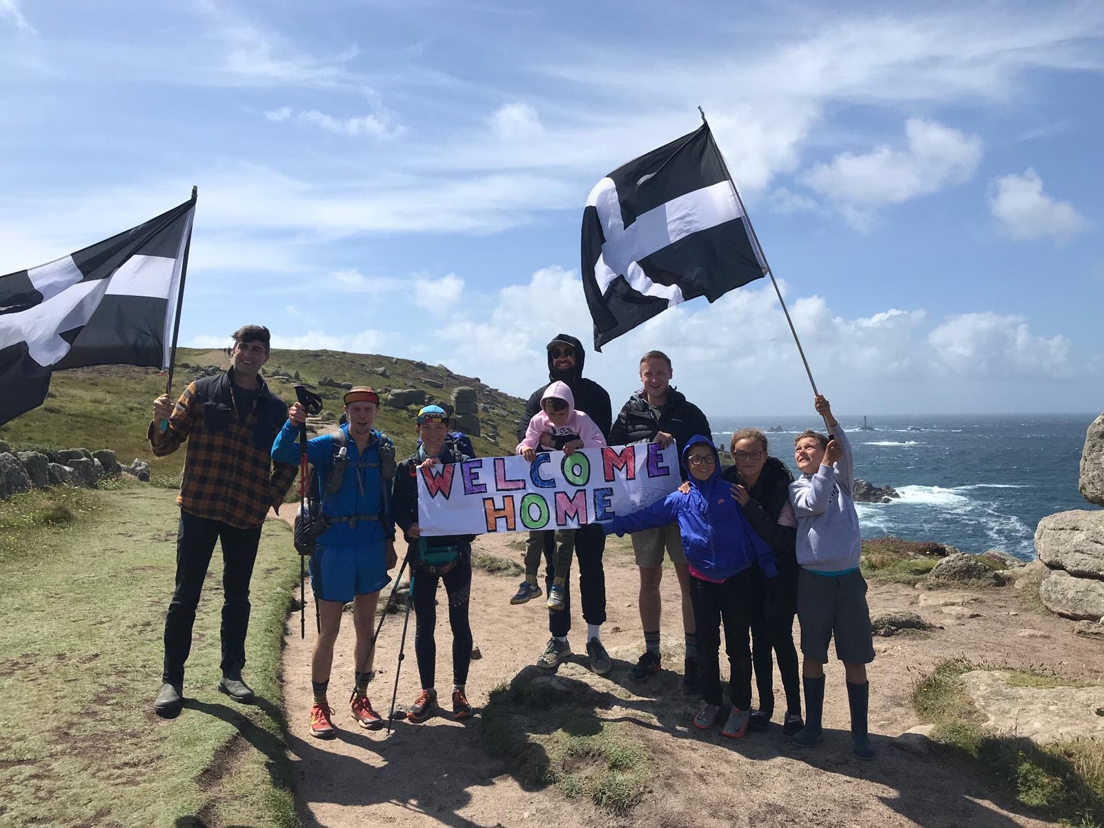 Ahead we could see a small crowd of people, the Cornish flags flying and realised it was for us. Friends and family had come to greet us and thankfully the sun was shining and they were all smiling. It was just the best thing to have familiar faces to hug and share the end of our journey with. We enjoyed photos, a pint of Rattler and an ice cream to celebrate.